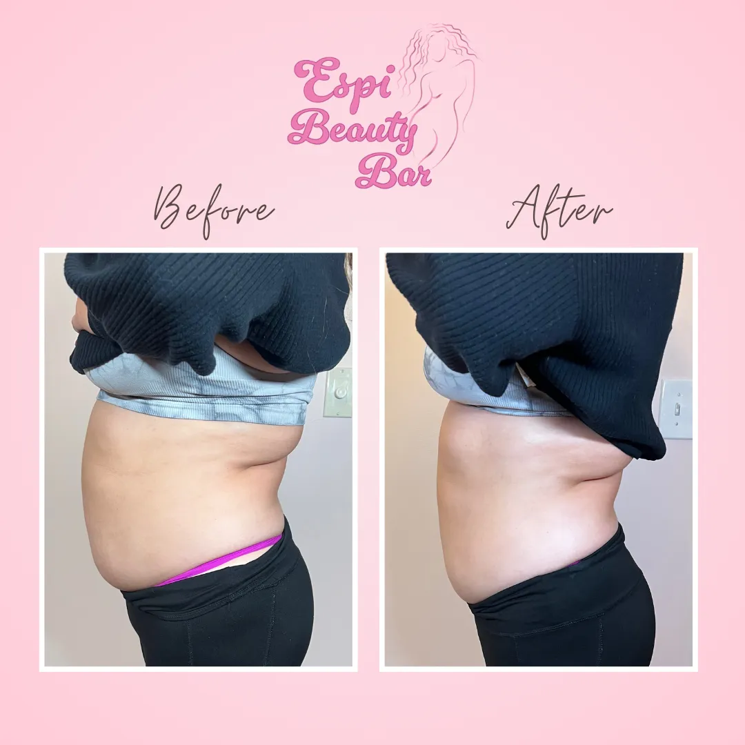 After having a few sessions of body sculpting I can see a difference in the cellulite on my stomach, it had decrease and I went from a size 11 to a size 9 pants.